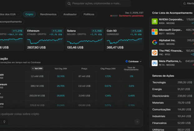 02 de dezembro de 2025 O mercado de criptomoedas abriu dezembro de 2025 com força total. Em tempo real (02/12/2025 – 19h EST / 21h horário de Brasília), o Bitcoin (BTC) alcança a nova máxima histórica de US$ 87.353,46, alta de 1,21% nas últimas 24 horas e volume negociado superior a US$ 12 milhões apenas […]
